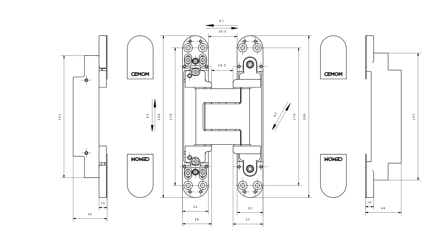 ציר סמוי אוניברסלי לחלוטין מתאים לדלתות שמאליות וימניות