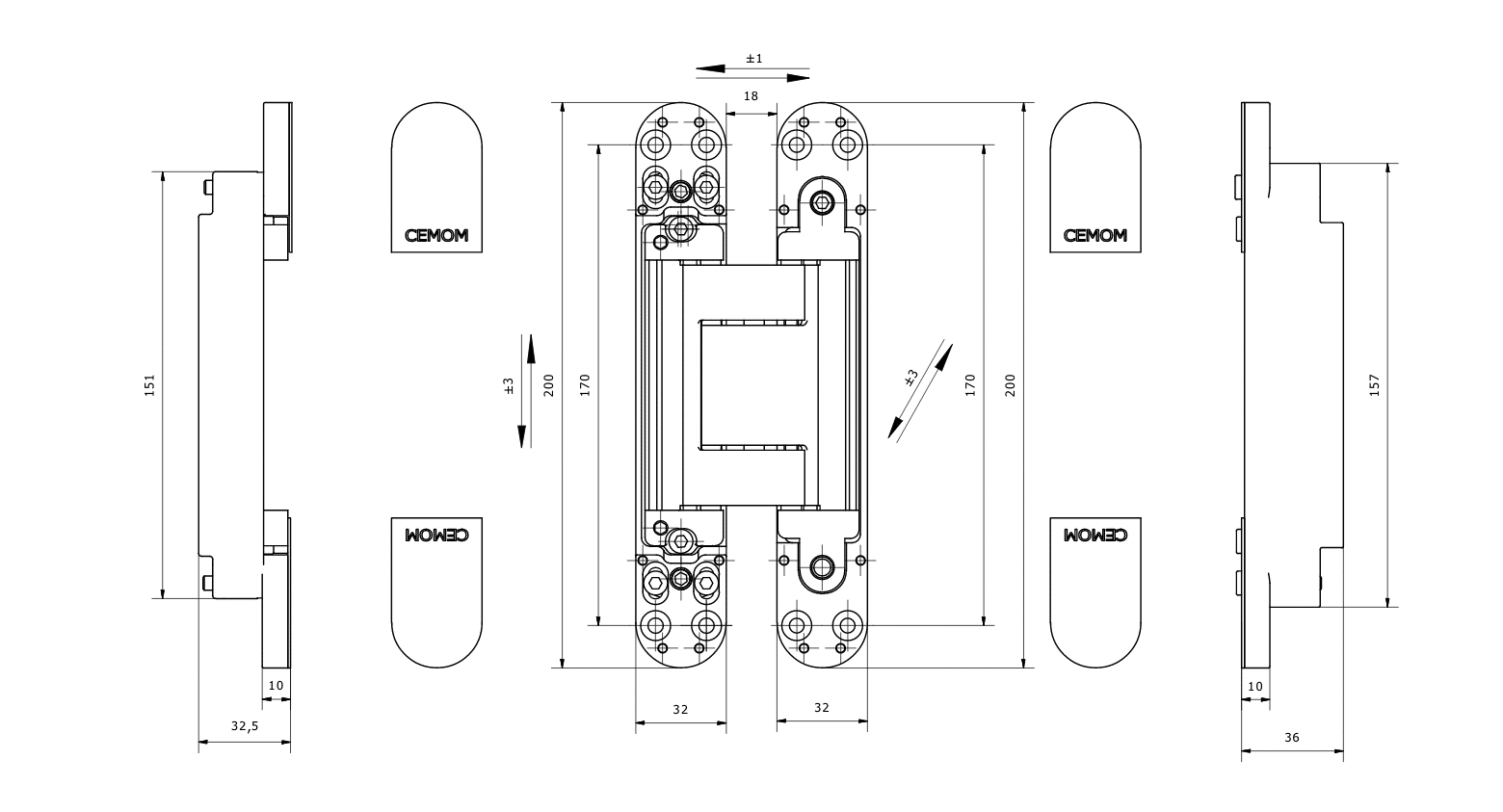 ציר סמוי אוניברסלי לחלוטין מתאים לדלתות שמאליות וימניות