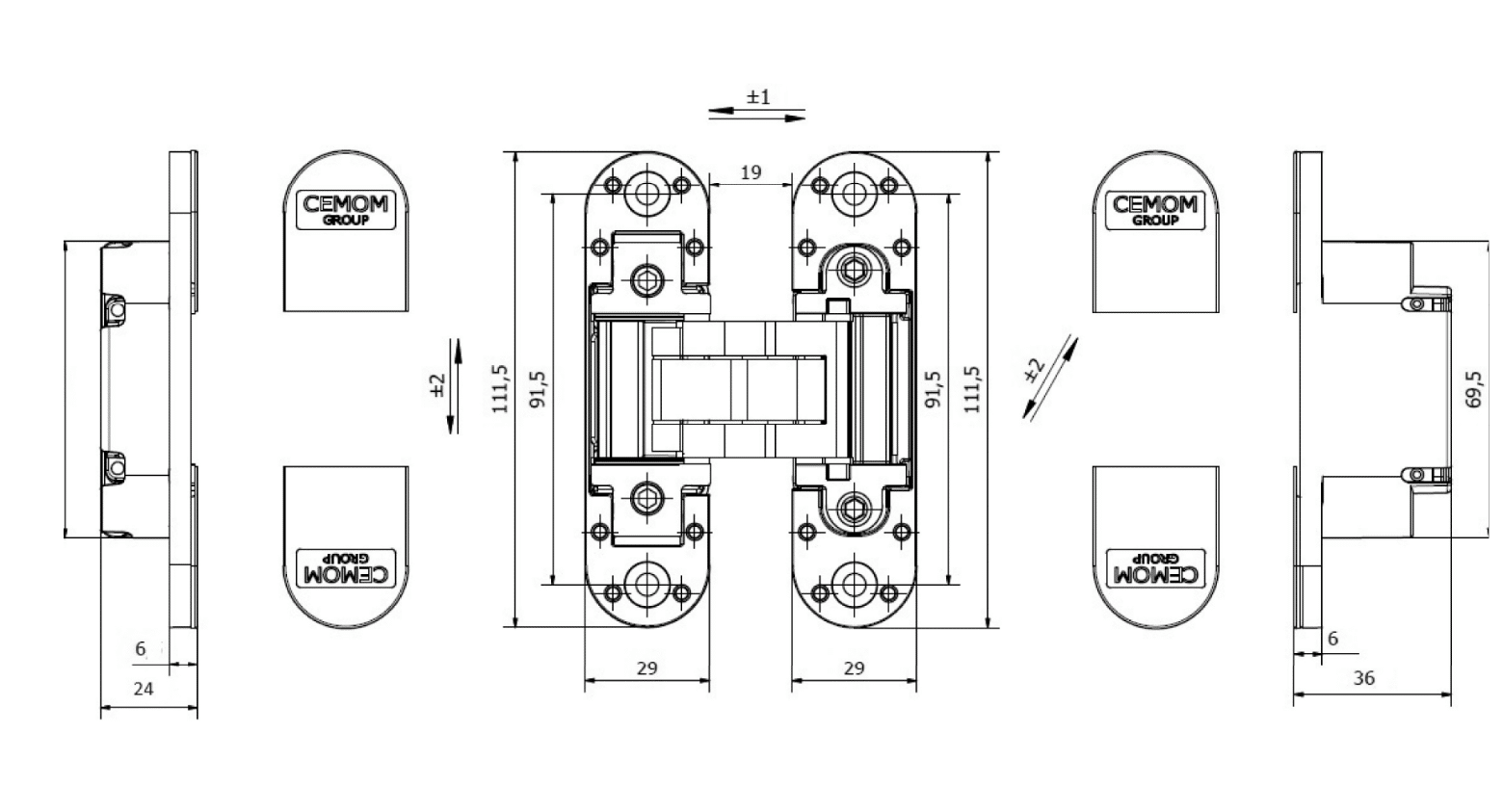 *צידוד צד +/-2 מ"מ  (ימין/שמאל)