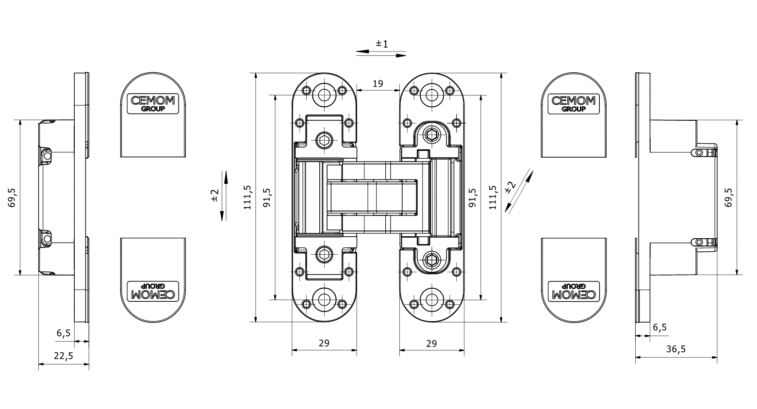 ציר סמוי אוניברסלי לחלוטין מתאים לדלתות שמאליות וימניות