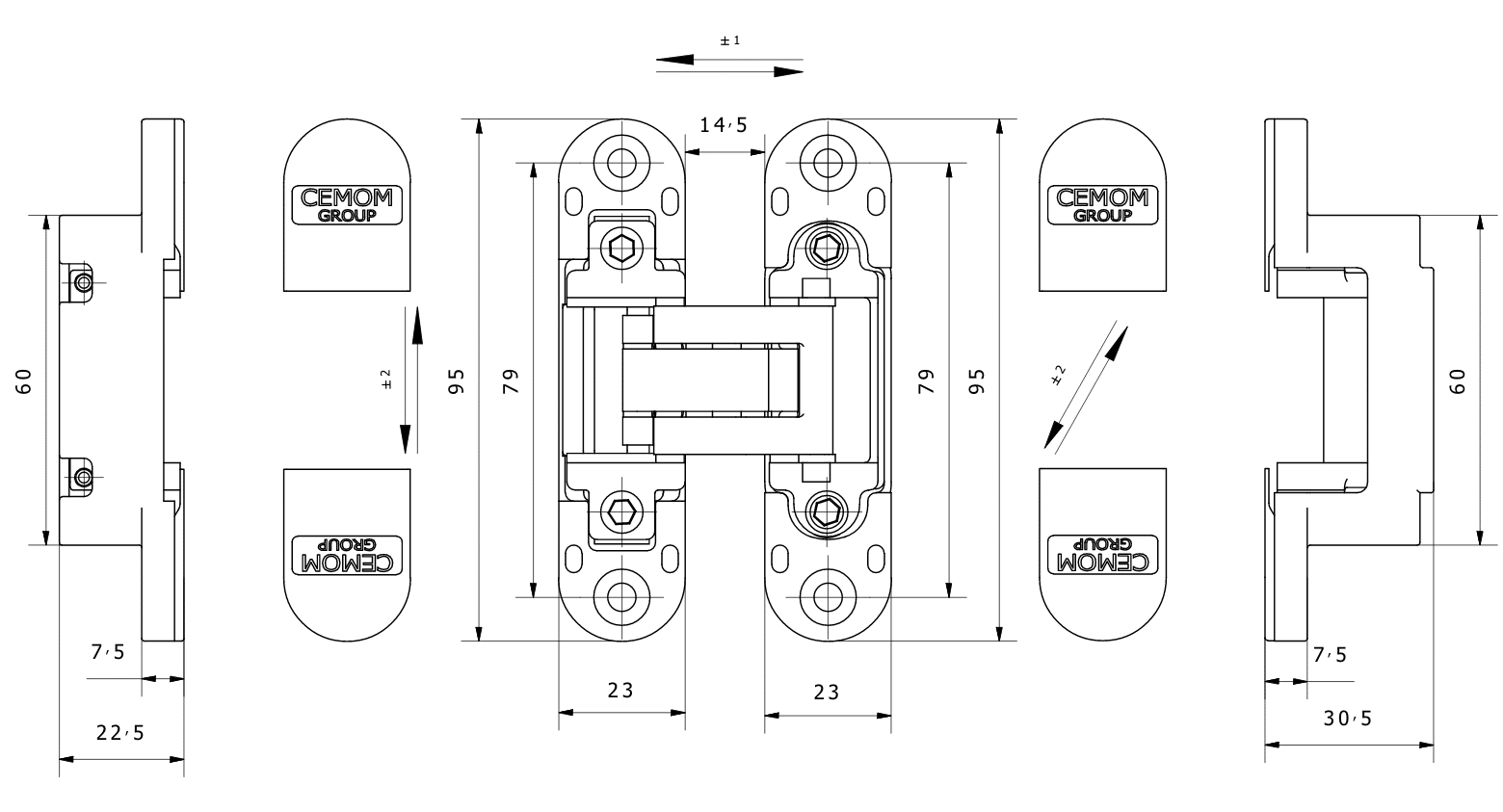 ציר סמוי אוניברסלי לחלוטין מתאים לדלתות שמאליות וימניות